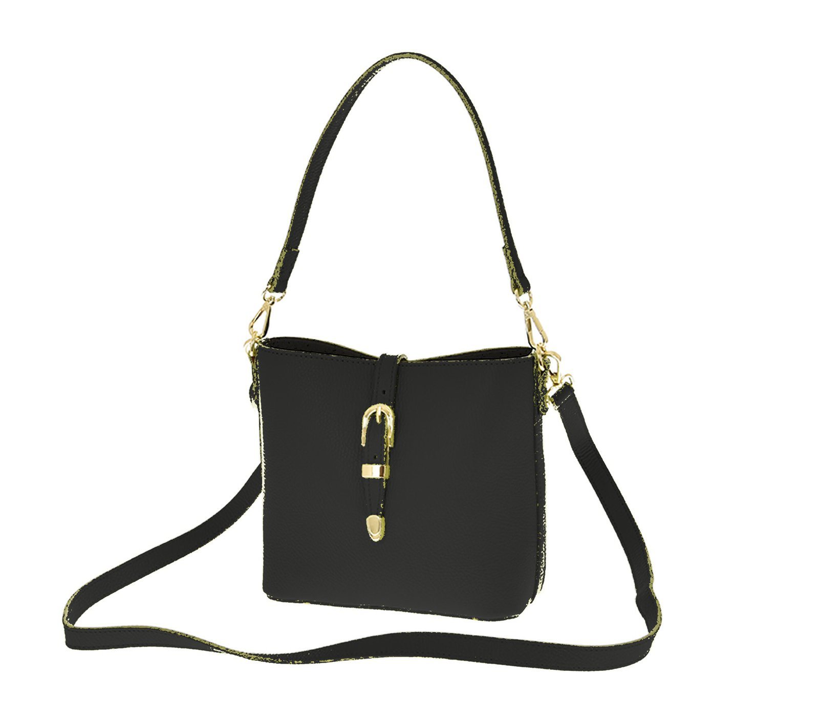 Elegancka i nowoczesna damska torebka crossbody wykonana w 100% z naturalnej skóry, starannie wyprodukowana w Polsce. Klasyczny czarny kolor w połączeniu z delikatnymi złotymi detalami nadaje torebce luksusowy i ponadczasowy charakter, który idealnie pasuje do każdej stylizacji.
